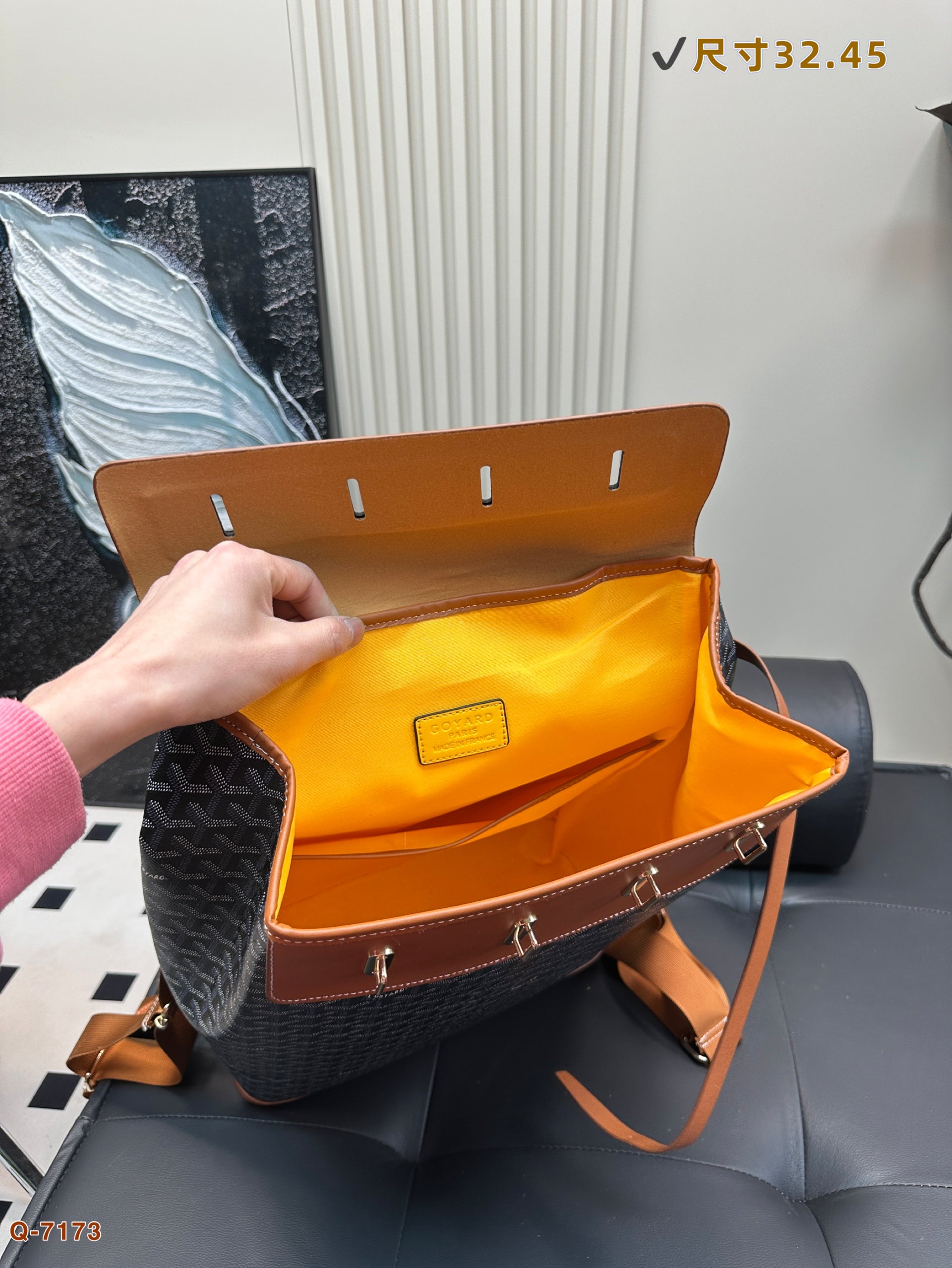 - Material: Goyardine canvas and calfskin