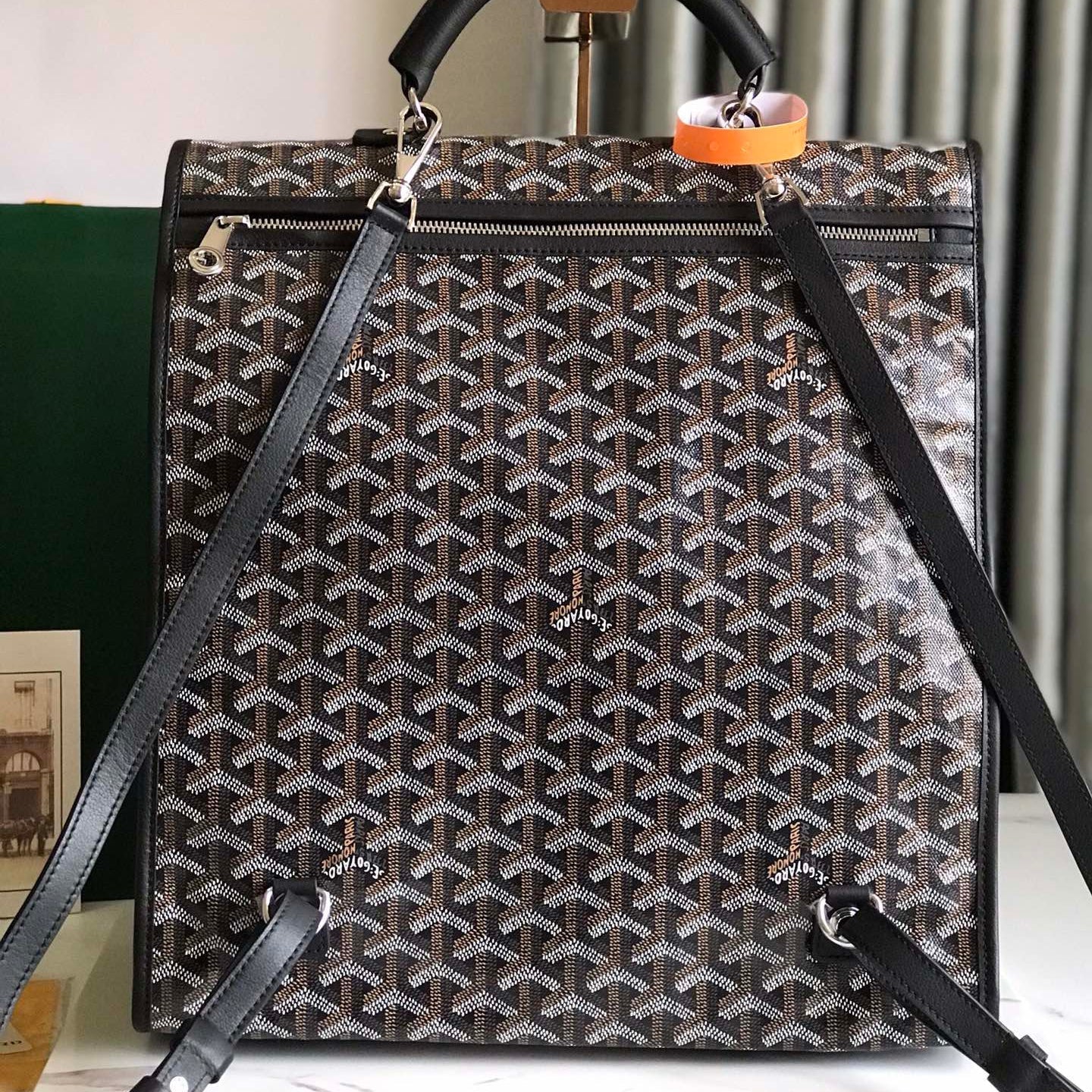 SAINT L¨¦GER BACKPACK 35 IN BROWN MIX BALCK GOYARDINE CANVAS AND CALFSKIN WITH CARTOON PATCH