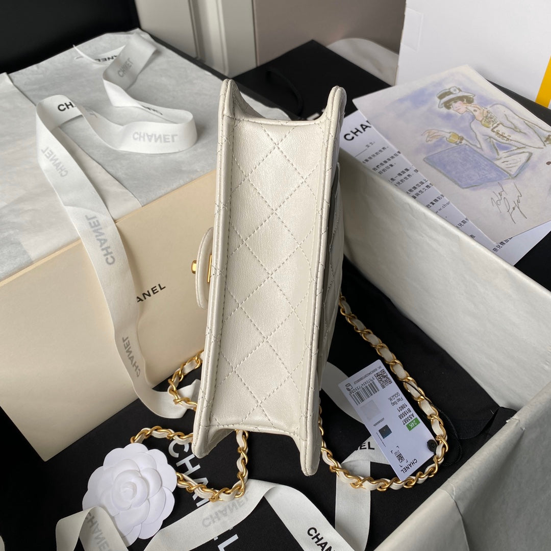 24s small flap bag 23cm cream calfskin gold hardware