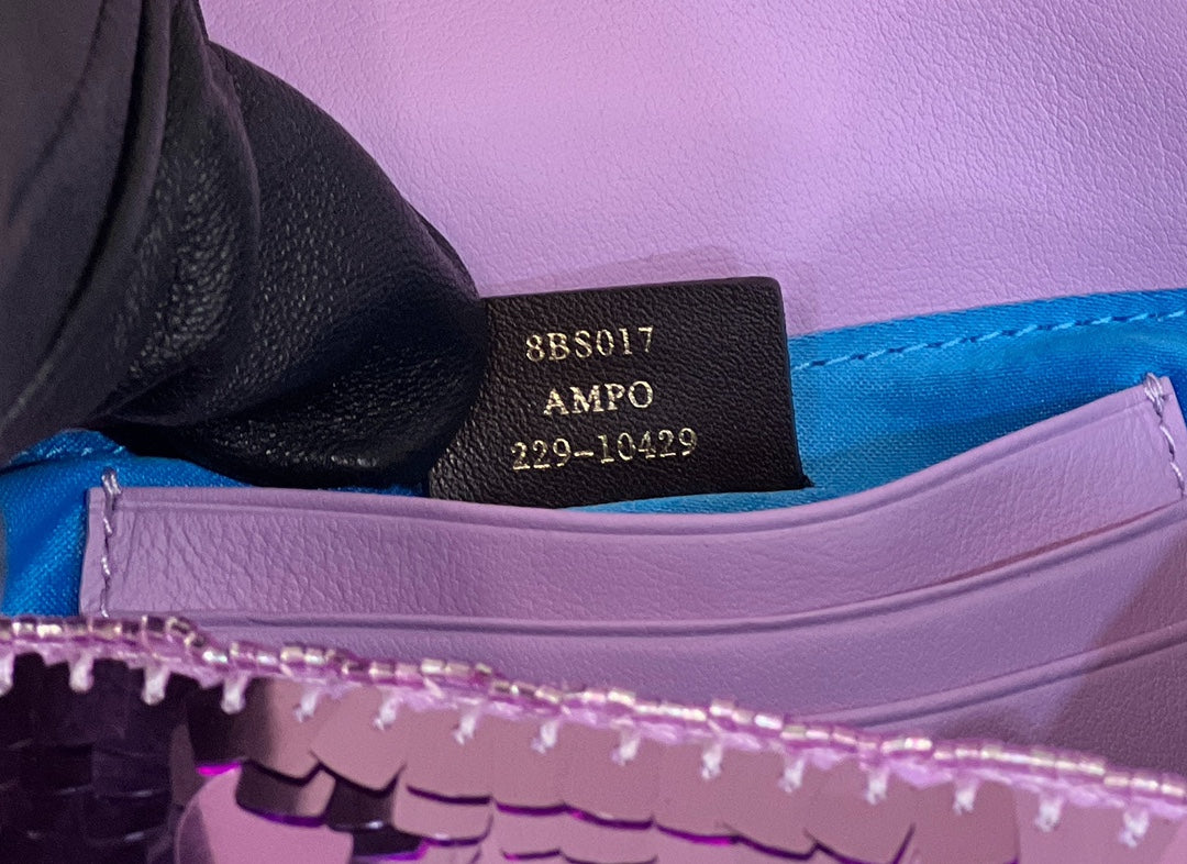 BAGUETTE MINI 19 IN PERIWINKLE PURPLE SEQUINS GOLD HARDWARE