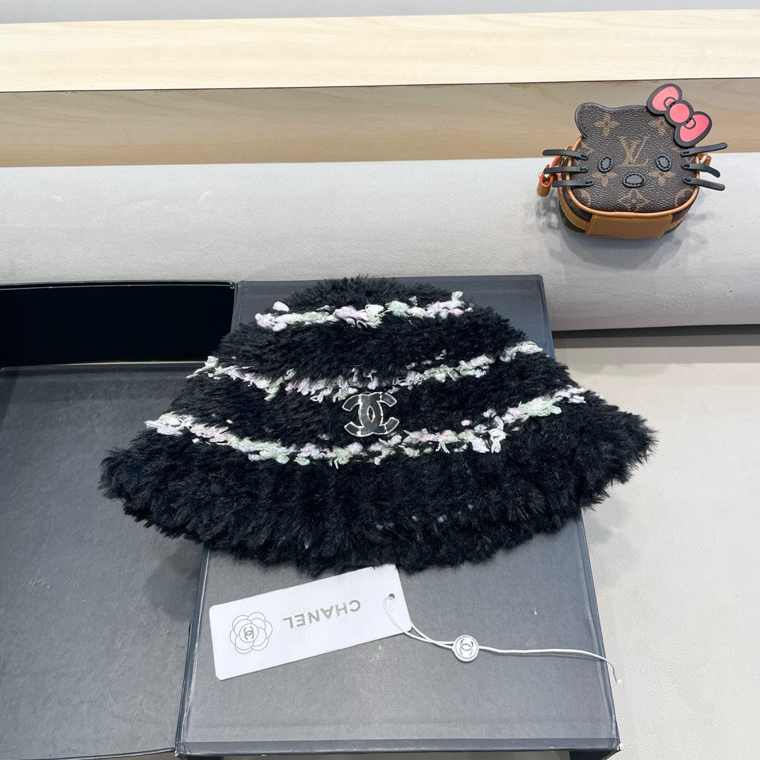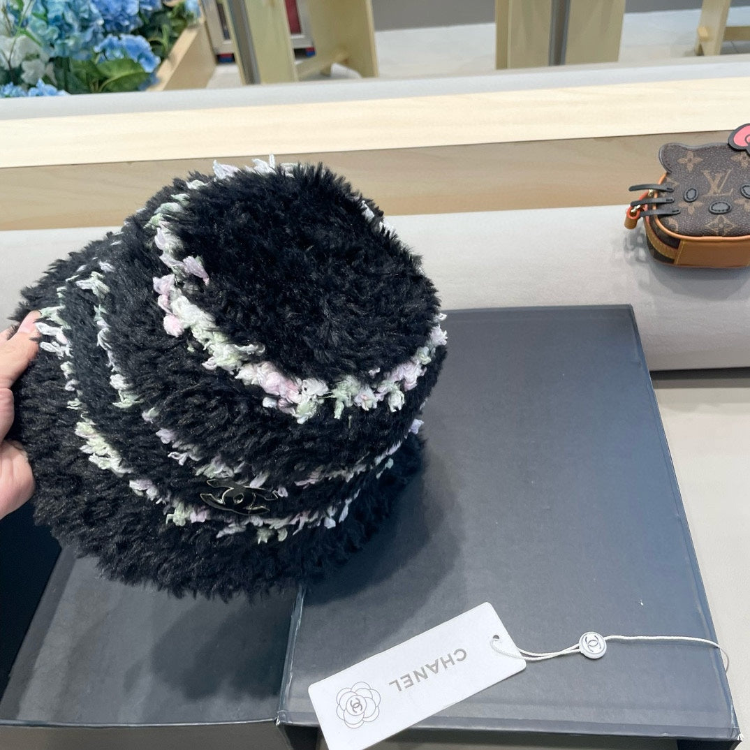 - Stylish plush bucket hat for women, suitable for autumn and winter, designed for warmth with a mixed-color look.