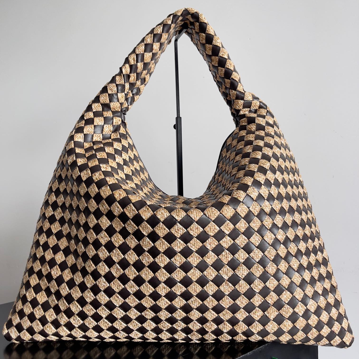 BV Large Hop 54 Chocolate Cowhide Mix Beige Raffia 209070