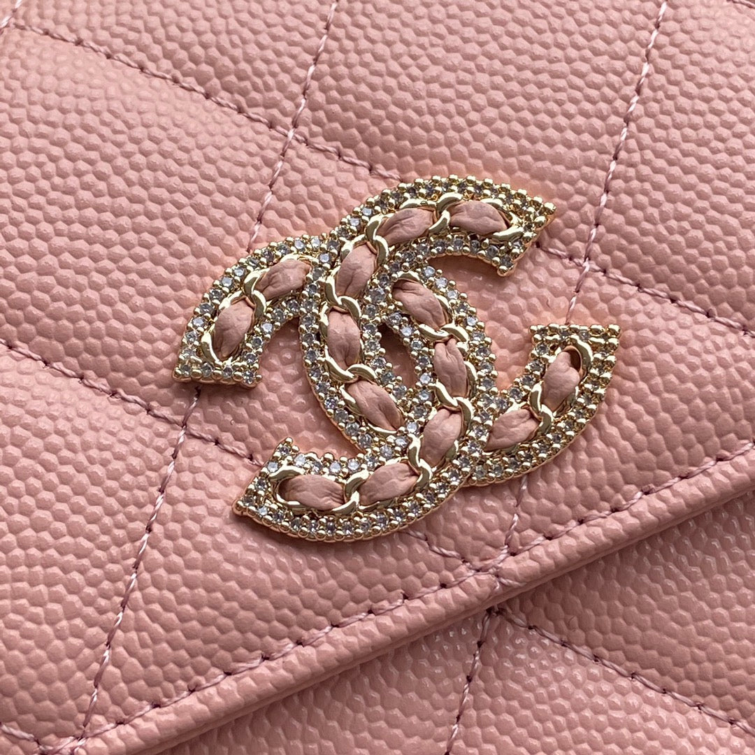 CC Classic Long Wallet 19cm Pink Grained Calfskin