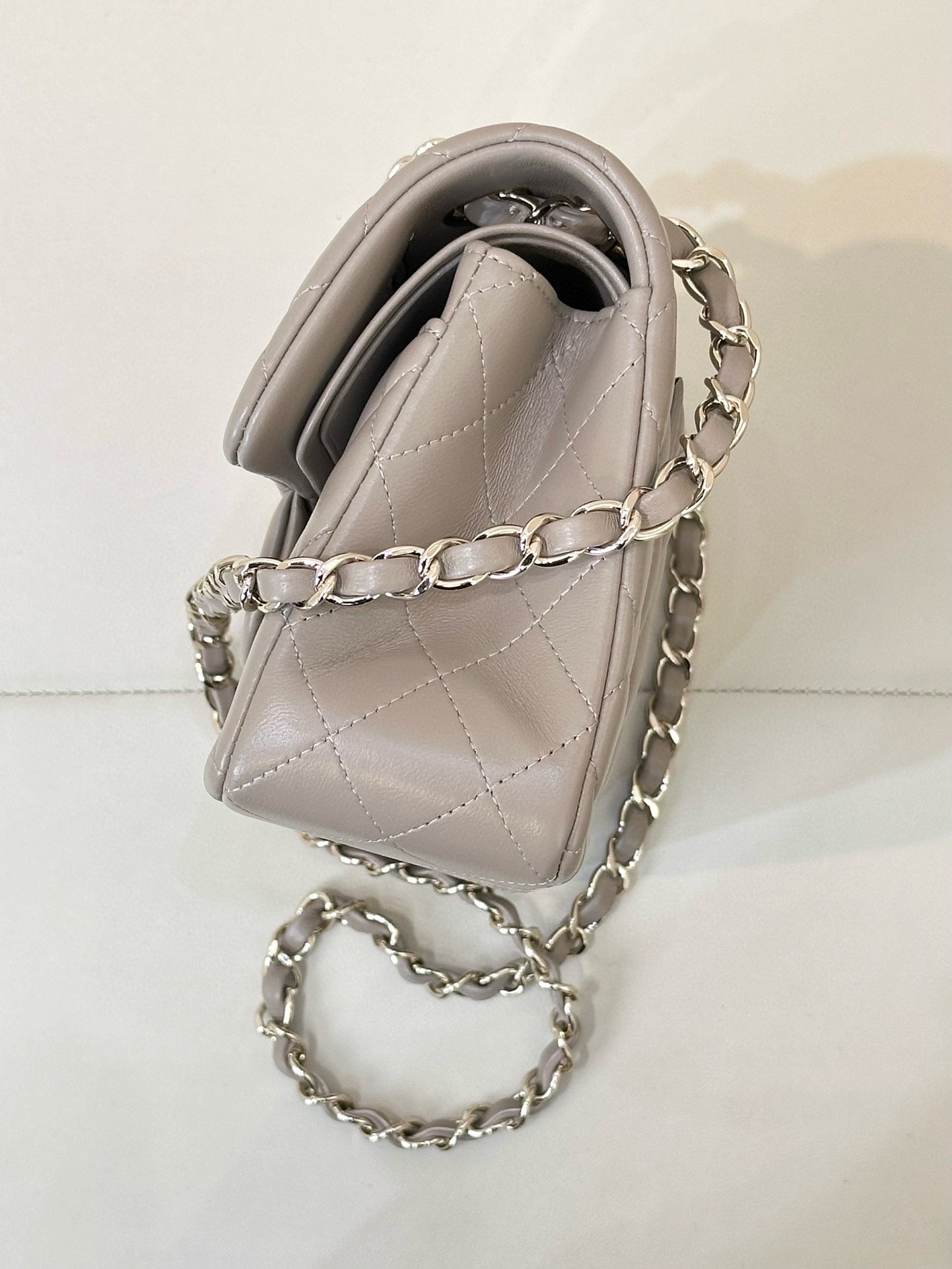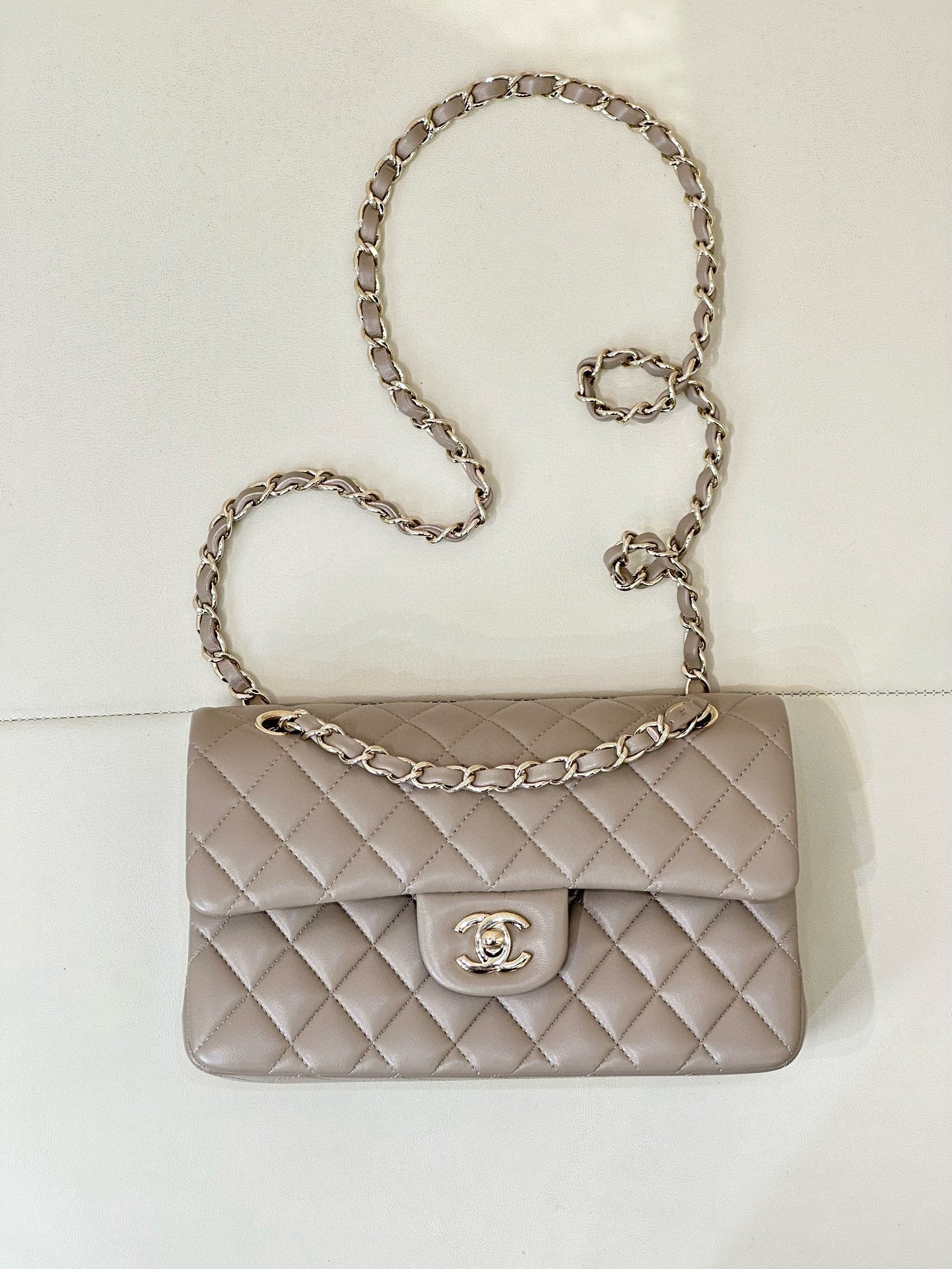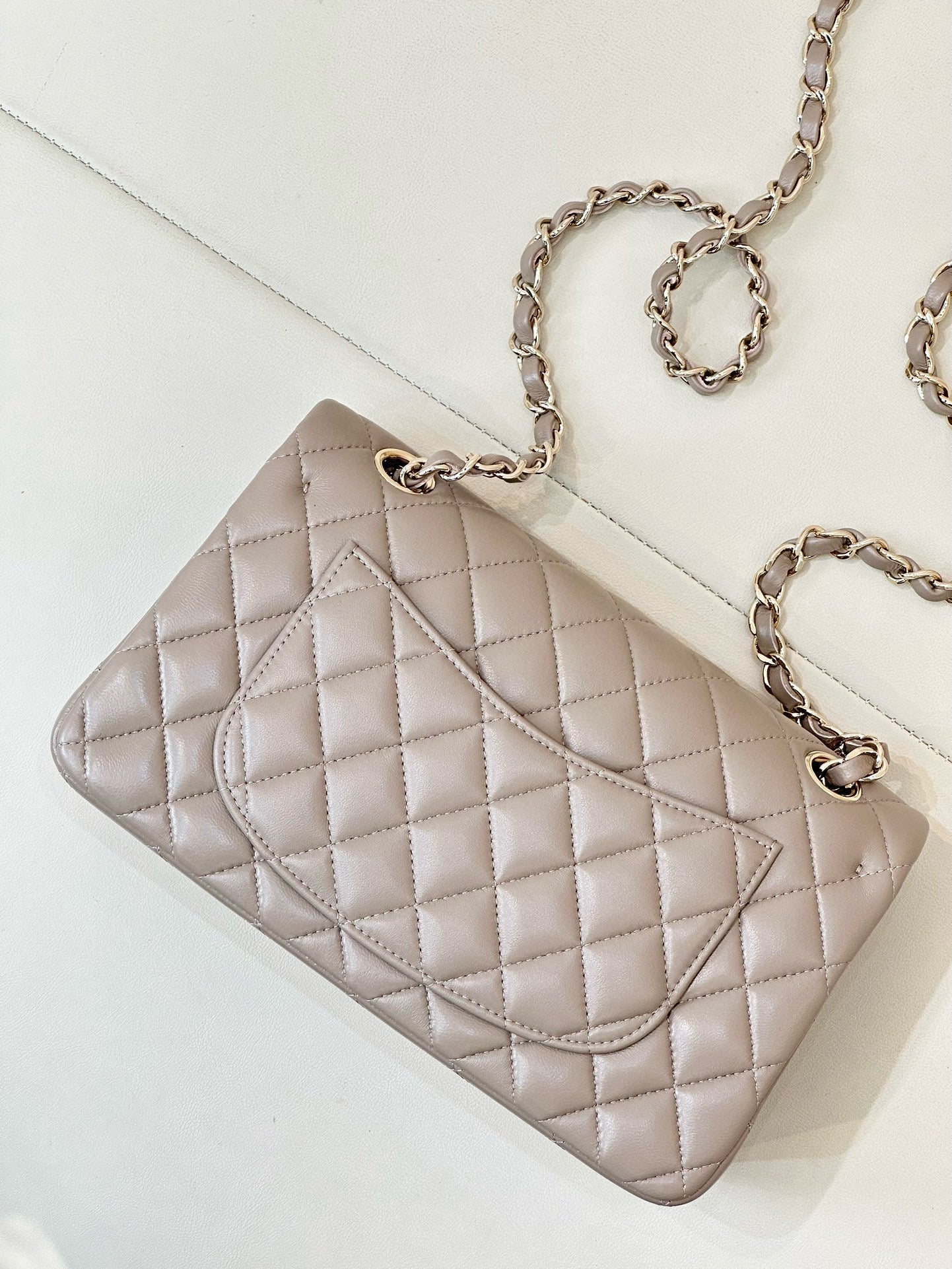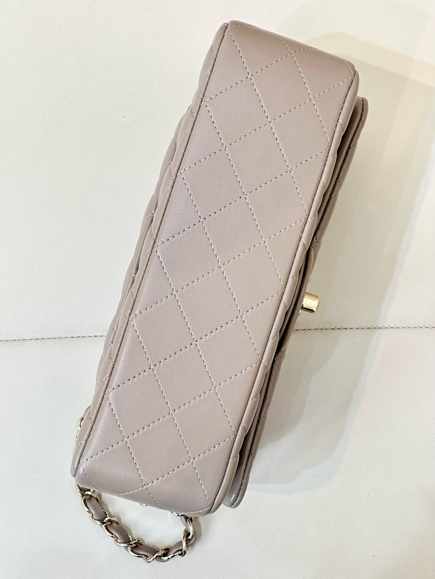 FLAP BAG 23CM BEIGE LAMBSKIN LIGHT GOLD HARDWARE