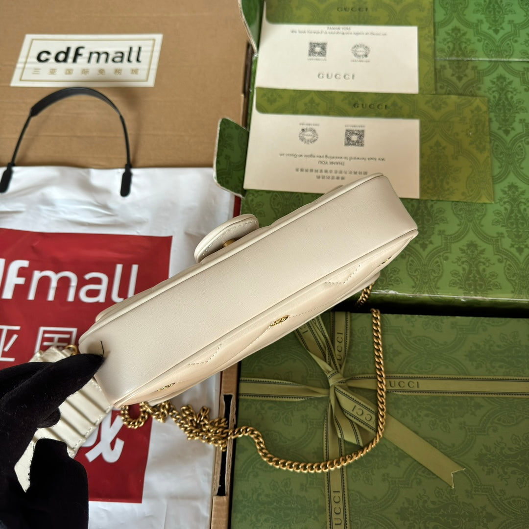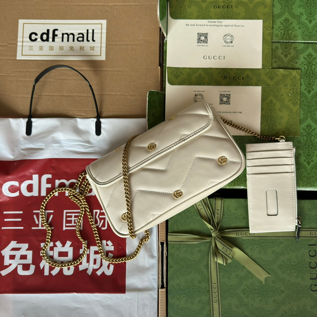 gg marmont 21cm white calfskin double g stud gold hardware
