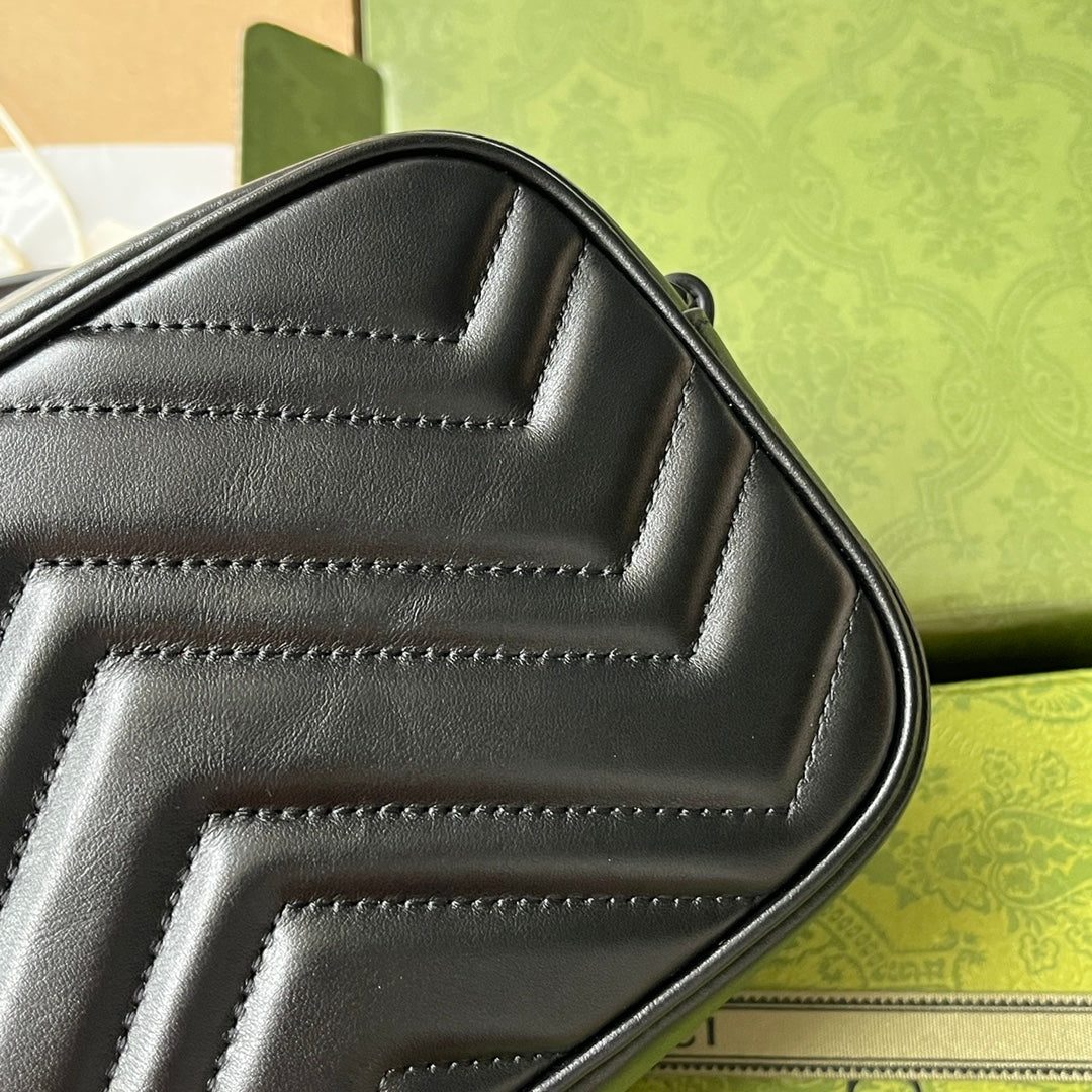 gg marmont mini 18cm zip top all black calfskin