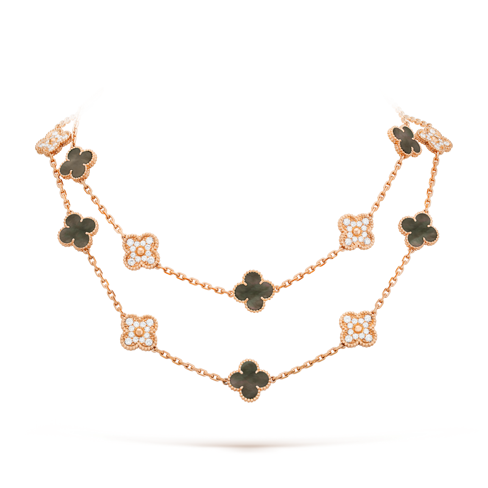 CLOVER 20 MOTIFS DARK MOP DIAMOND NECKLACE