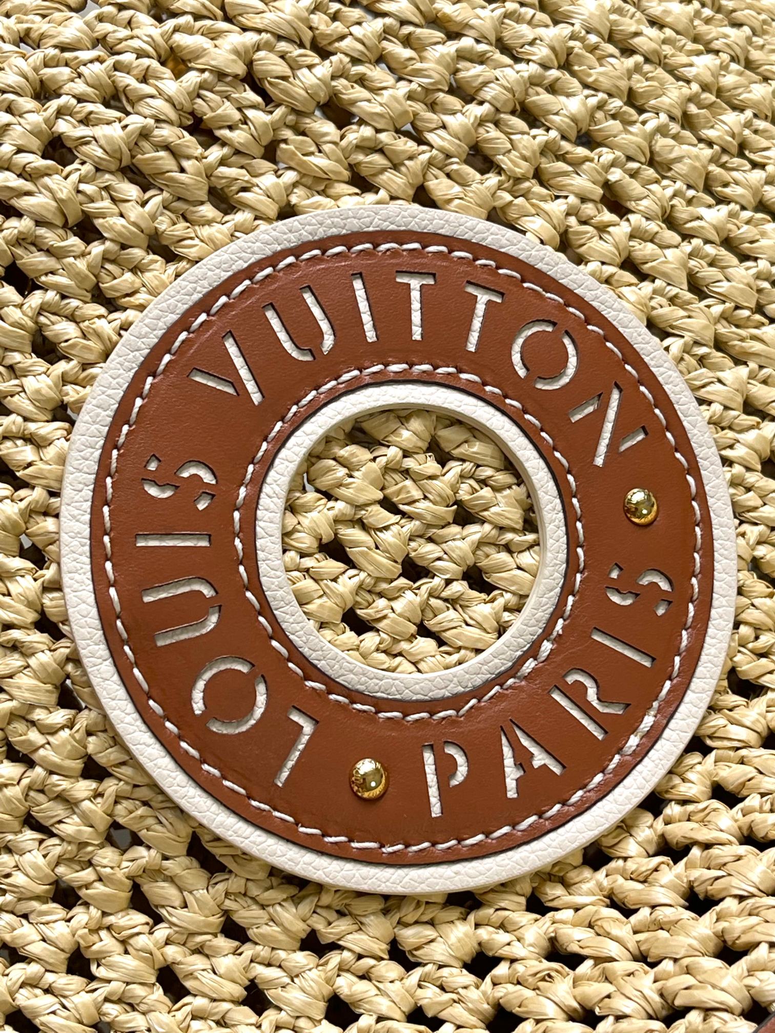 noe bb 22cm beige raffia tan calfskin