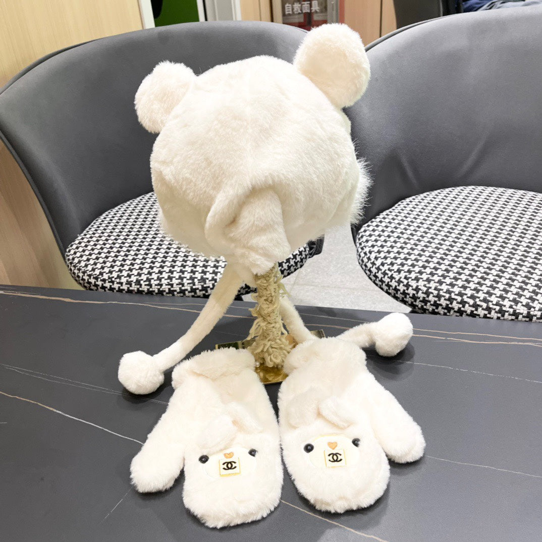 - Three-Piece Set for women, featuring a cute bear-shaped plush hood, scarf, and gloves, ideal for autumn and winter.